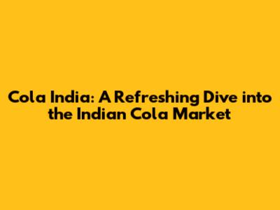 Cola India: A Refreshing Dive Into The Indian Cola Market
