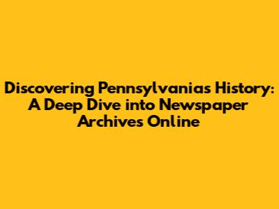 Discover Pennsylvania's History: Newspaper Archives Online
