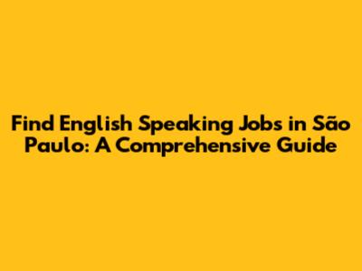 Find English Speaking Jobs In São Paulo: A Comprehensive Guide