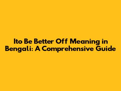 Ito Be Better Off Meaning In Bengali: A Comprehensive Guide