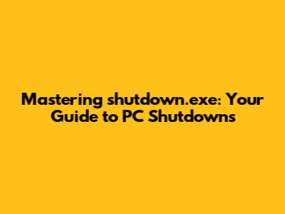 By following these guidelines, you can harness the power of shutdown.exe safely and effectively, making your system management tasks much smoother.