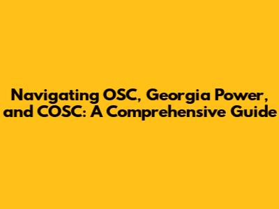 Navigating OSC, Georgia Power, And COSC: A Comprehensive Guide