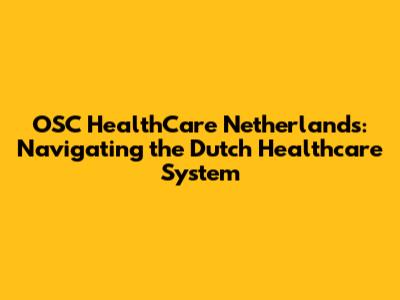 OSC HealthCare Netherlands: Your Guide To Dutch Healthcare