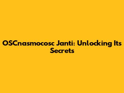 OSCNASMOCosC Janti: A Comprehensive Guide
