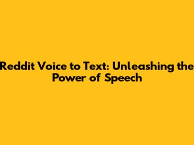 Reddit Voice To Text: Unleashing The Power Of Speech