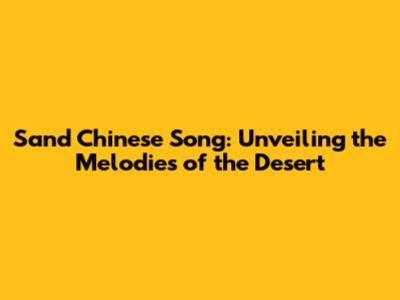 Sand Chinese Song: Unveiling The Melodies Of The Desert