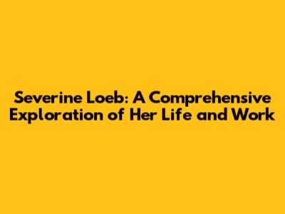 Hey everyone! Today, we're diving deep into the fascinating world of Severine Loeb, a name that might be new to some, but trust me, her story is worth knowing. We'll explore her life, her career, and everything in between. So, buckle up, guys, and let's get started!