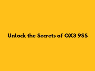 Unlock The Secrets Of OX3 9SS
