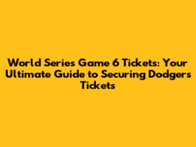World Series Game 6 Tickets: Your Guide To Securing Dodgers Tickets